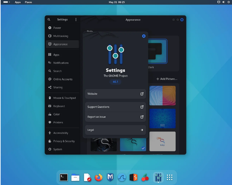 Kali Linux 2024.2 desktops come with the GNOME 46 desktop environment, which improves the user experience with a more refined interface and improved support for themes and extensions.