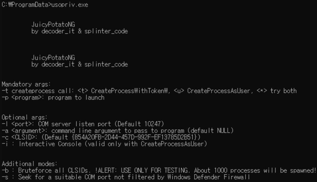 Further, Lazarus employs the ‘JuicyPotato’ privilege escalation malware (‘usopriv.exe’) to secure higher-level access to the compromised system. The JuicyPotato malware executes a second malware loader (‘usoshared.dat’) which decrypts downloaded data files and executes them into memory, thereby evading antivirus software.