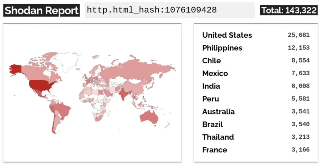 VulnCheck has, so far, identified approximately 10,000 implanted systems through fingerprinting. However, this number is expected to rise as their investigation unfolds. A search on Shodan, shared by Aves Netsec CEO Simo Kohonen, currently reveals over 140,000 Internet-exposed devices with Cisco’s Web UI enabled.