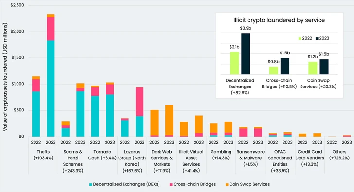 Blockchain analytics firm Elliptic, in its latest report, highlighted the rising trend of crypto crime displacement toward chain- or asset-hopping typologies, as traditional entities like mixers face seizures and sanctions scrutiny. Cross-chain crime involves the swift conversion of crypto assets from one token or blockchain to another, obscuring their origin. This method has become increasingly lucrative for money laundering and serves as an alternative to conventional approaches like mixers.