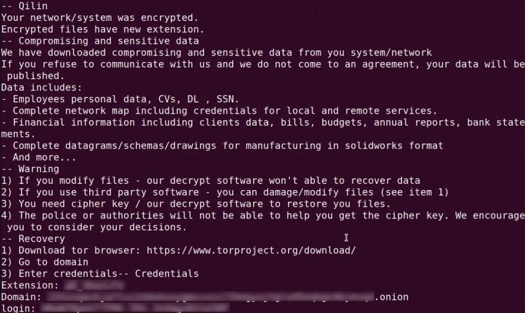 BleepingComputer reports ransom demands associated with Qilin ranging from $25,000 to multimillion-dollar figures. The Qilin ransomware operation, formerly known as “Agenda,” rebranded in September 2022 and has since been actively targeting enterprises. Operating with a double-extortion strategy, the threat actors breach networks, exfiltrate data, and then deploy the ransomware, leveraging both the stolen data and encrypted files to coerce victims into paying the ransom.
