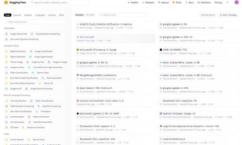 Hugging Face has a wide variety of pre-trained models available across almost all possible applications. These range from translation, text generation, and summarization to even sentiment analysis—there will be a pre-trained model. This saves the use of time and resources since one trains from scratch, fine-tuning tools end.